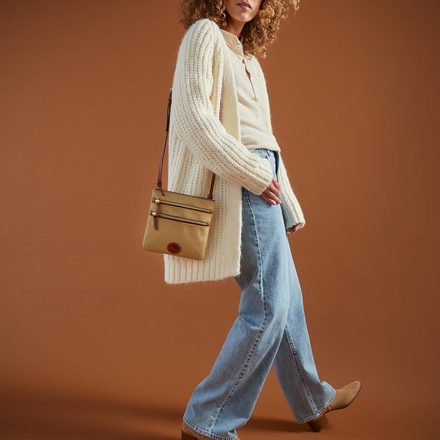 Dooney & Bourke Women’s North South Triple Zip Crossbody in Lightweight Nylon, Handbag with Adjustable Shoulder Strap